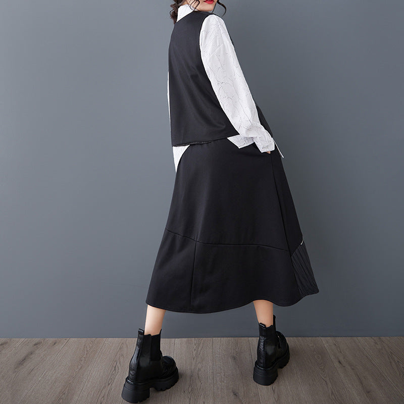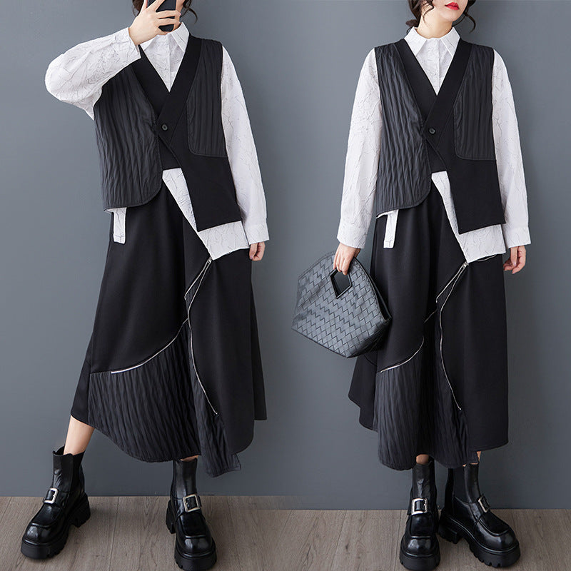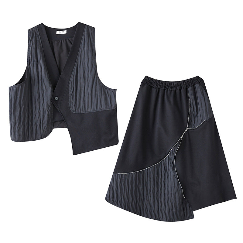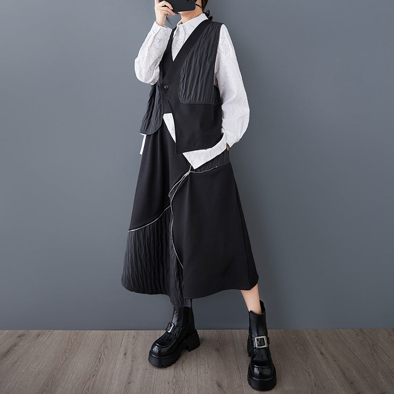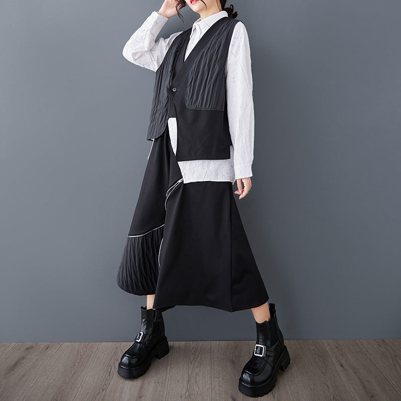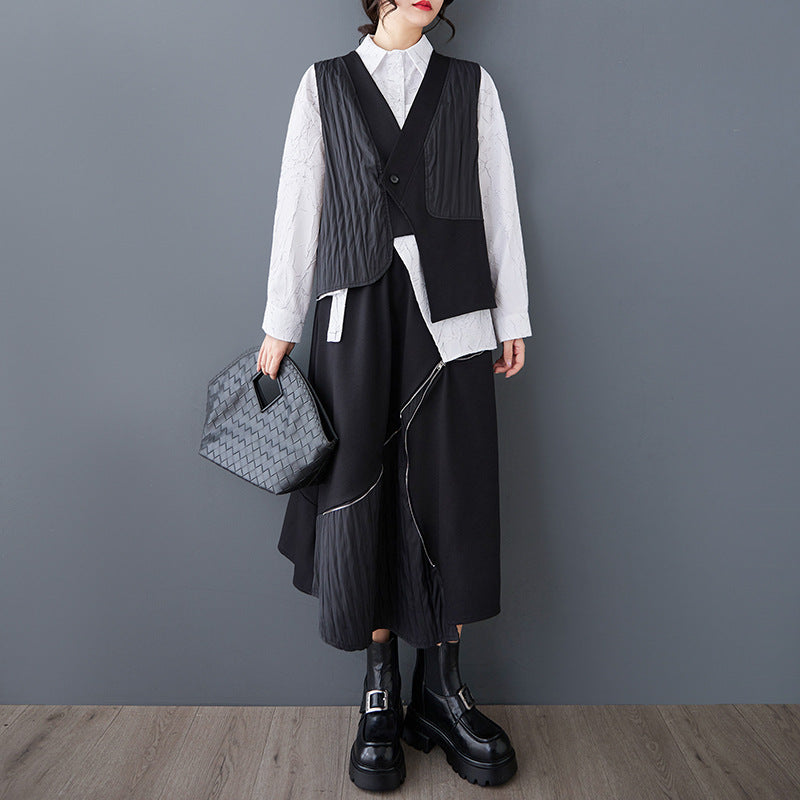 ワイド フィット ヴィンテージ 不規則 二重層 ベスト トップス ウエストゴム リラックス
