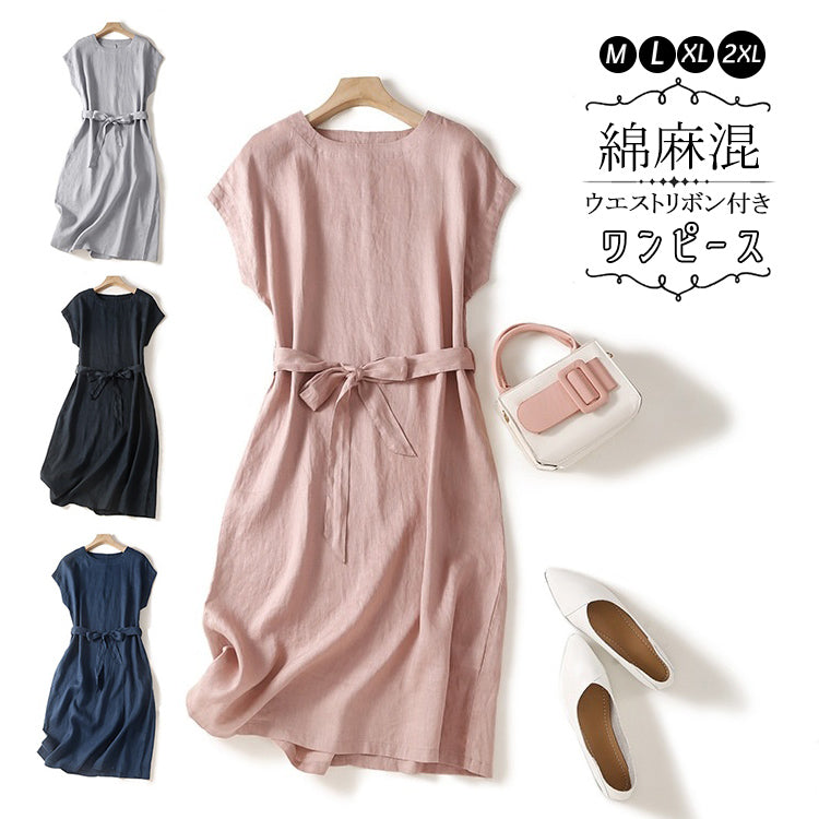 ワンピース リネンワンピース ロングワンピース レディースミディアム丈 ノースリーブ