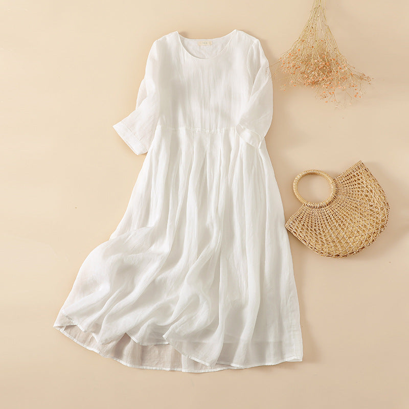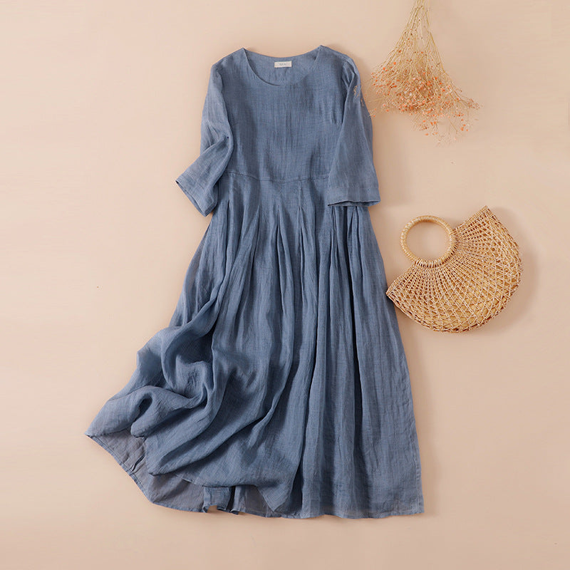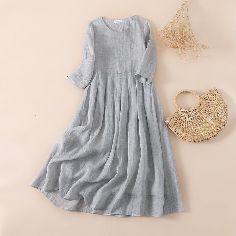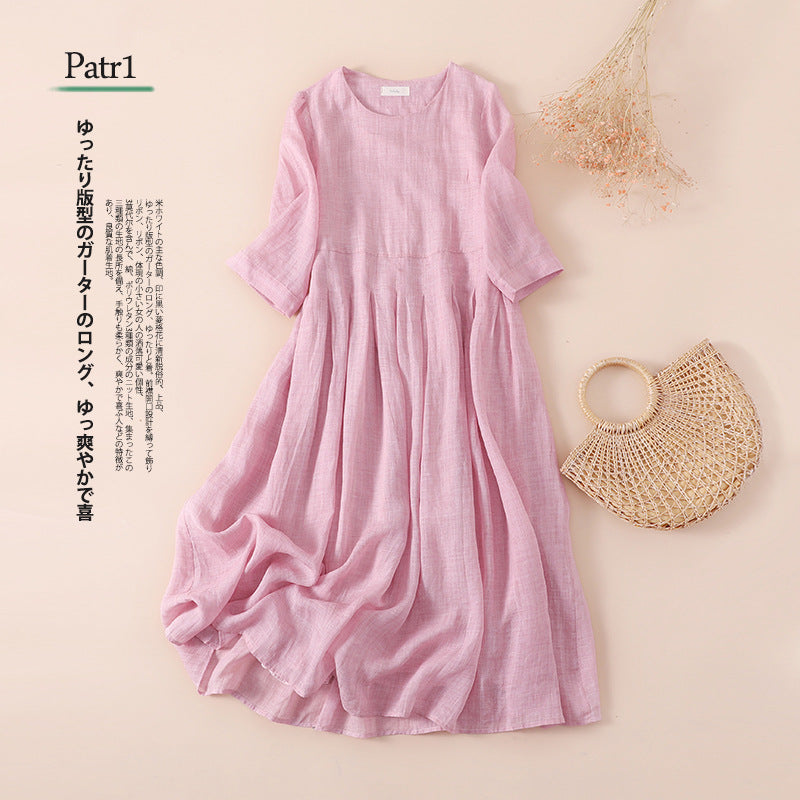 ワンピース レディース ロング丈 Aライン ゆったり 体型カバー ハイウエスト