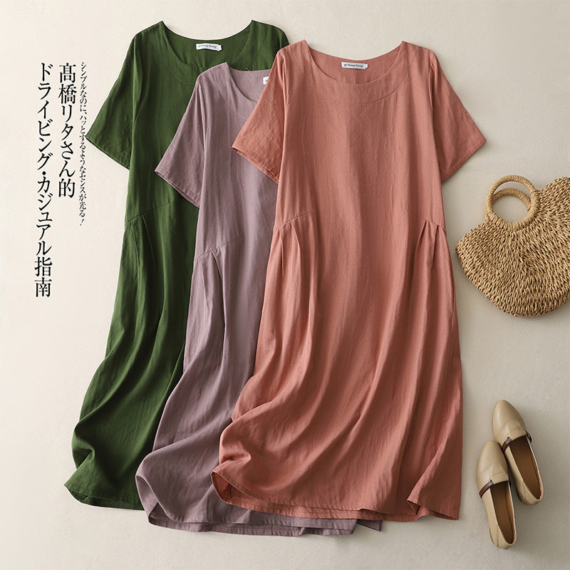 ワンピース レディース 夏 綿100 コットン ゆったり 着痩せ 体型カバー ロング丈