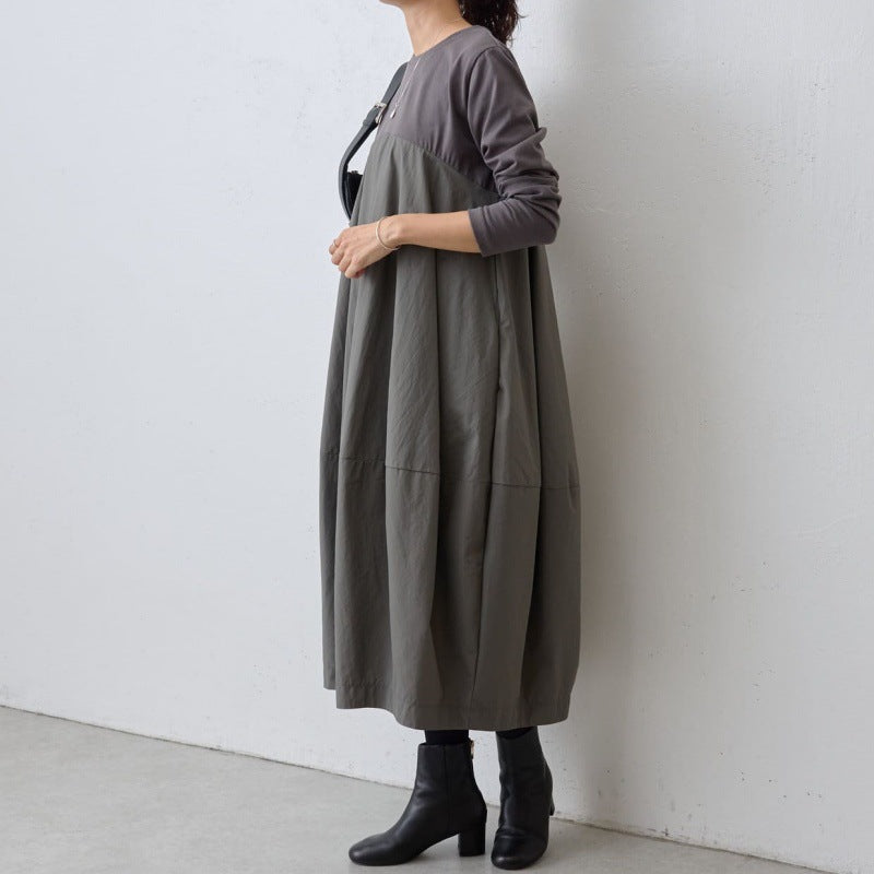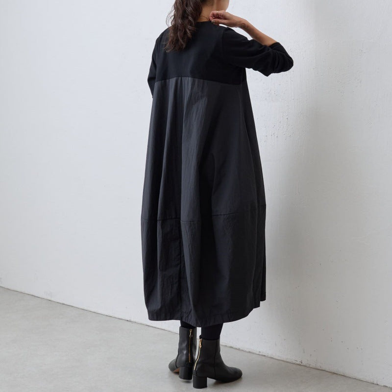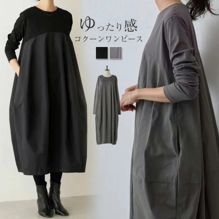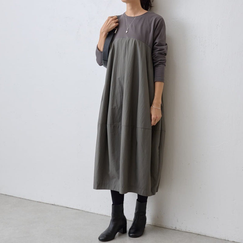 ワンピース レディース 長袖 ロングワンピース ニット切り替え 異素材ミックス
