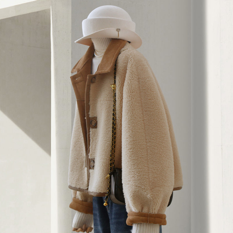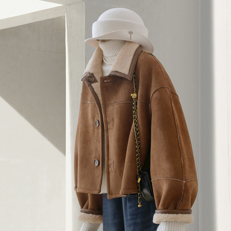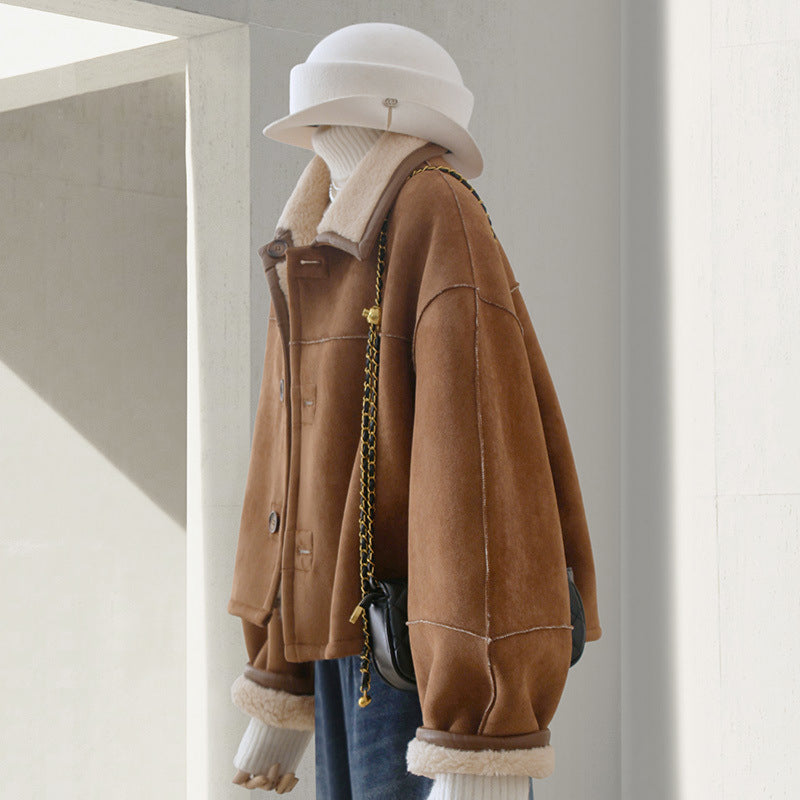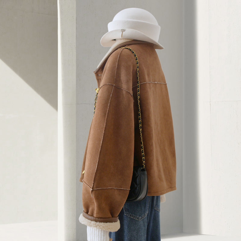 両面着 ラムウールジャケット 裏起毛 ボアブルゾン レディース 秋冬アウター