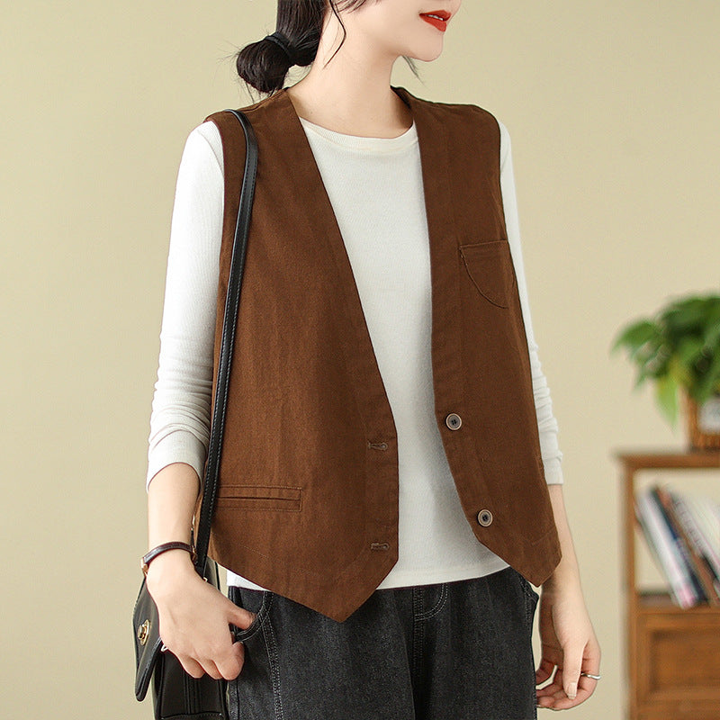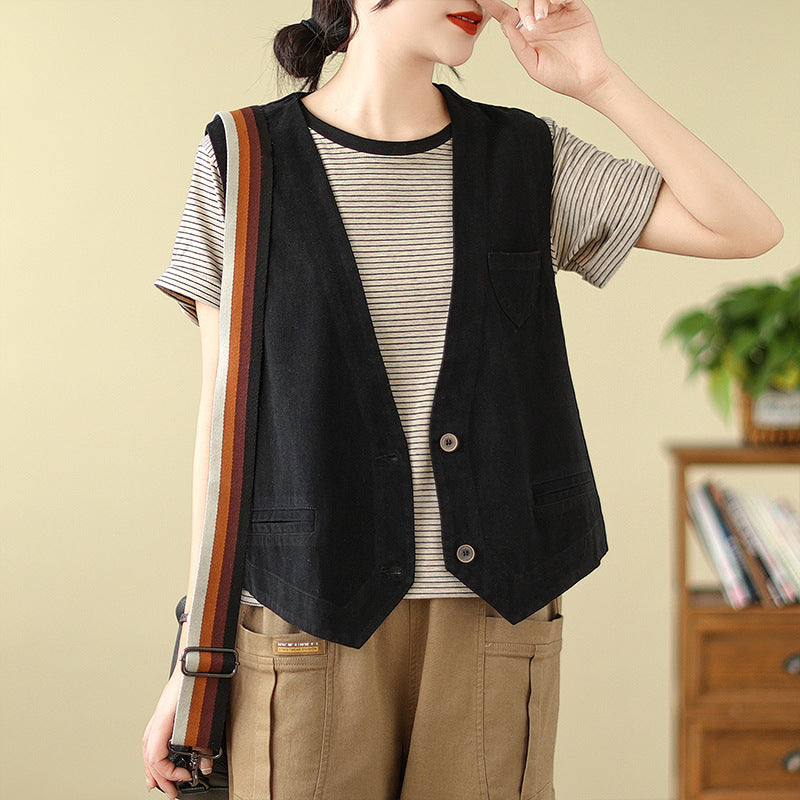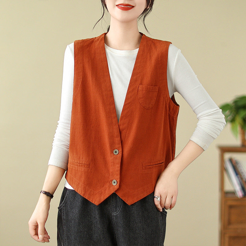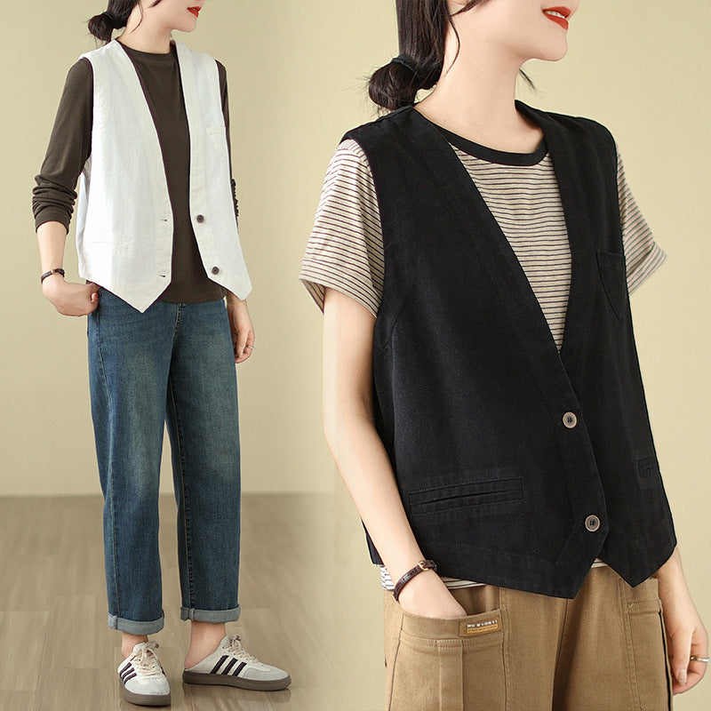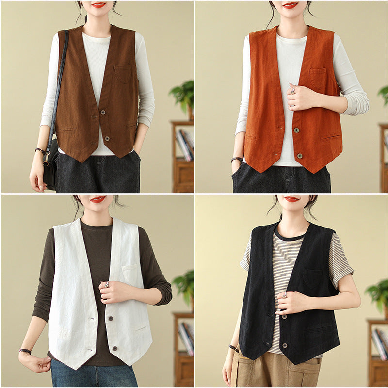 新作ジレ ベスト レディース コットン100% コットンジレ ノースリーブ
