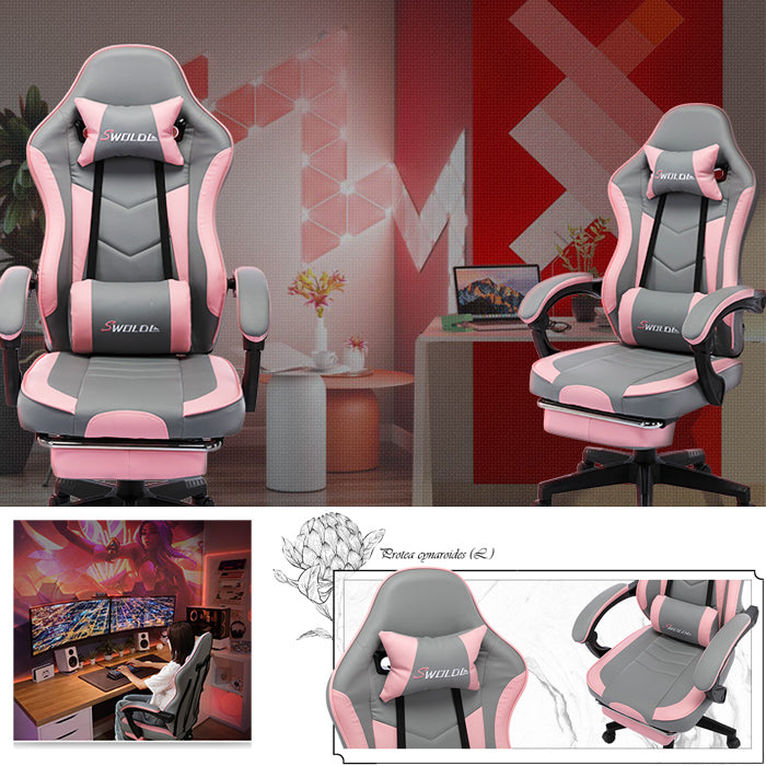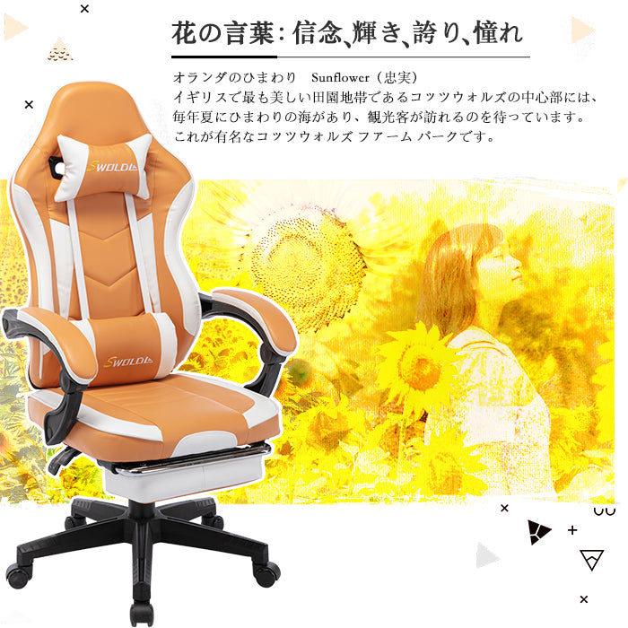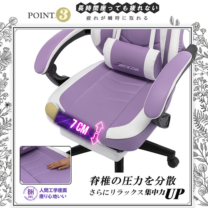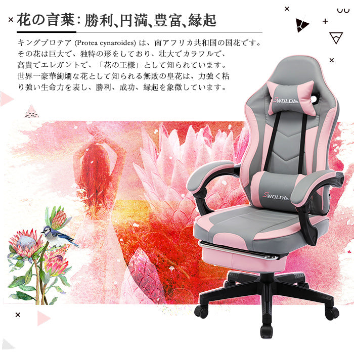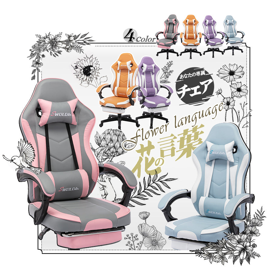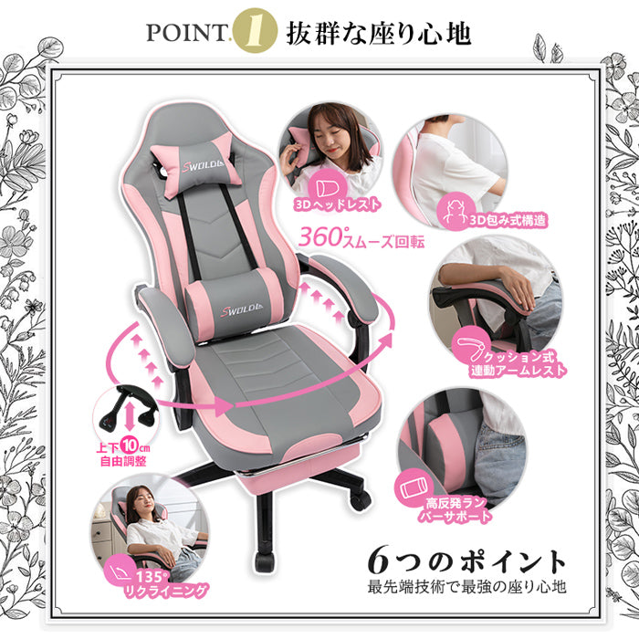 \ 特価中/ 送料無料 ゲーミングチェア パソコンチェア デスクチェア 女性 オットマン付き フラワー式デザイン 多機能 連動ひじ掛け ゲーム用 レディース ゲーム テレワーク おしゃれ 可愛い 疲れない疲れにくい 一年保証 gaming chair 人間工学