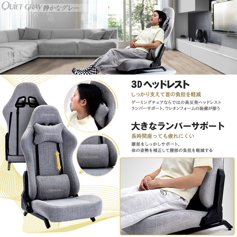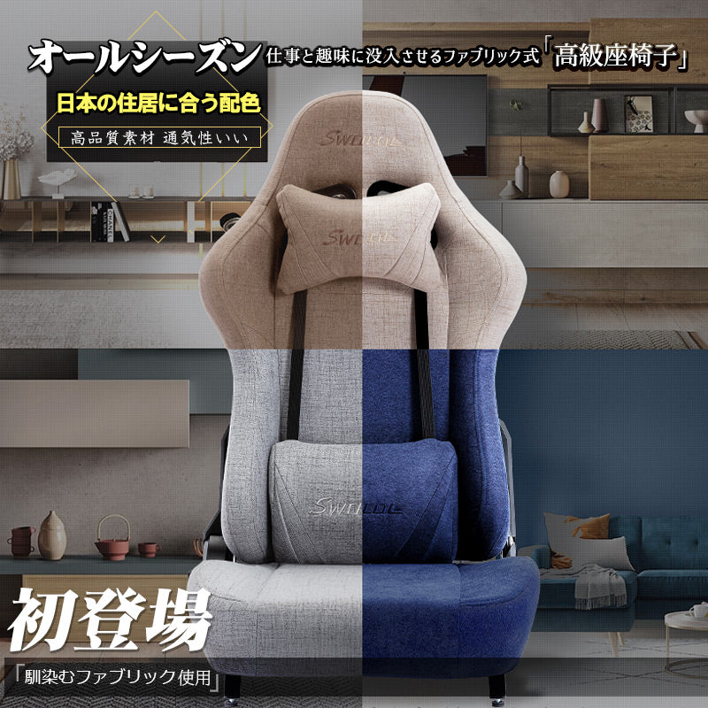 \ 特価中/ 送料無料 座椅子 ゲーミング ゲーミングチェア パソコンチェア ハイバック 肘掛け 腰痛 ファブリック素材 通気性 日本住宅向け色合い スタイリッシュ感 ウレタン座面 ランバーサポート プレゼント 人間工学 テレワーク gift
