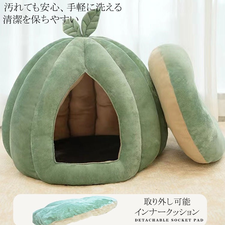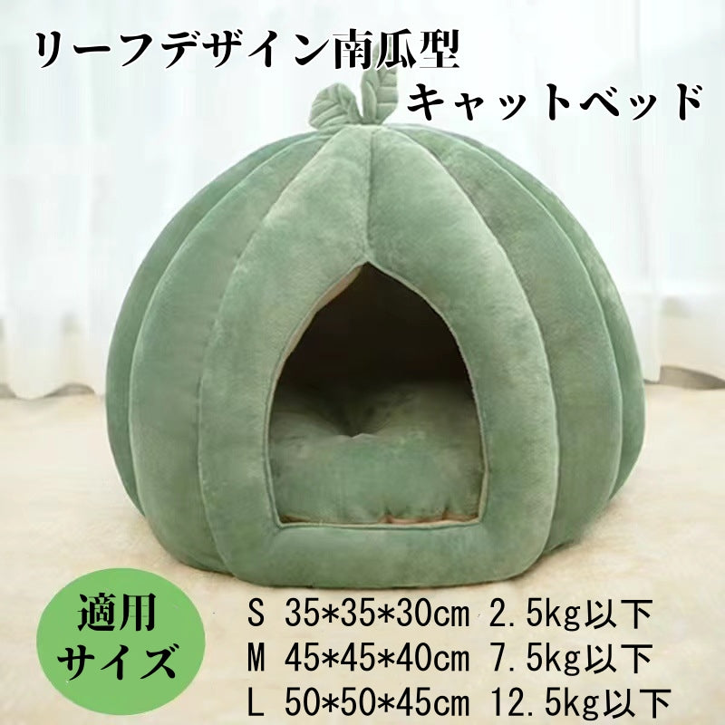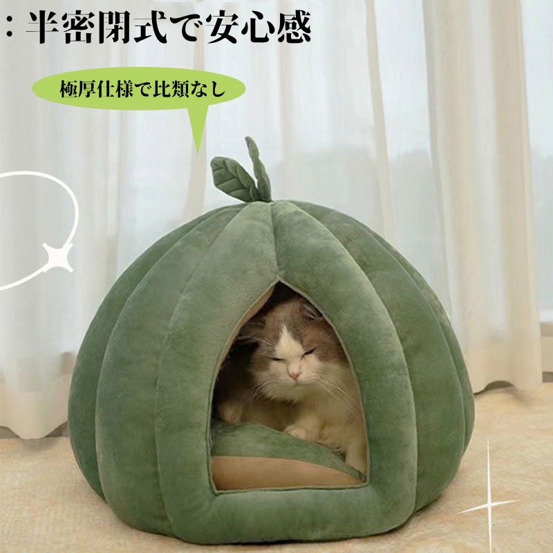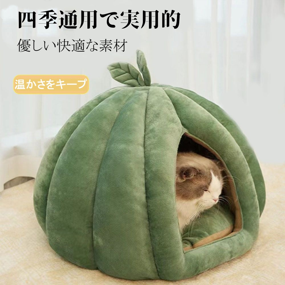 葉っぱ型 ペットベッド 猫用ベッド 冬用 保温 半密閉式 取り外し可能 四季対応 ペットベッド