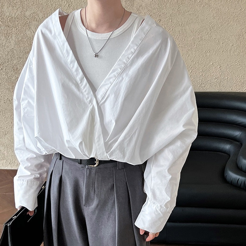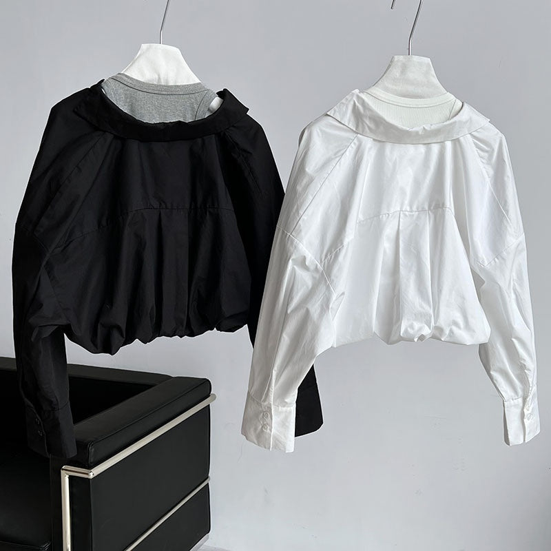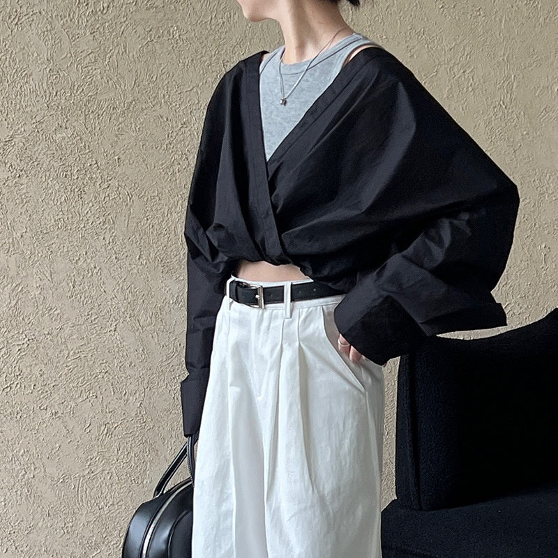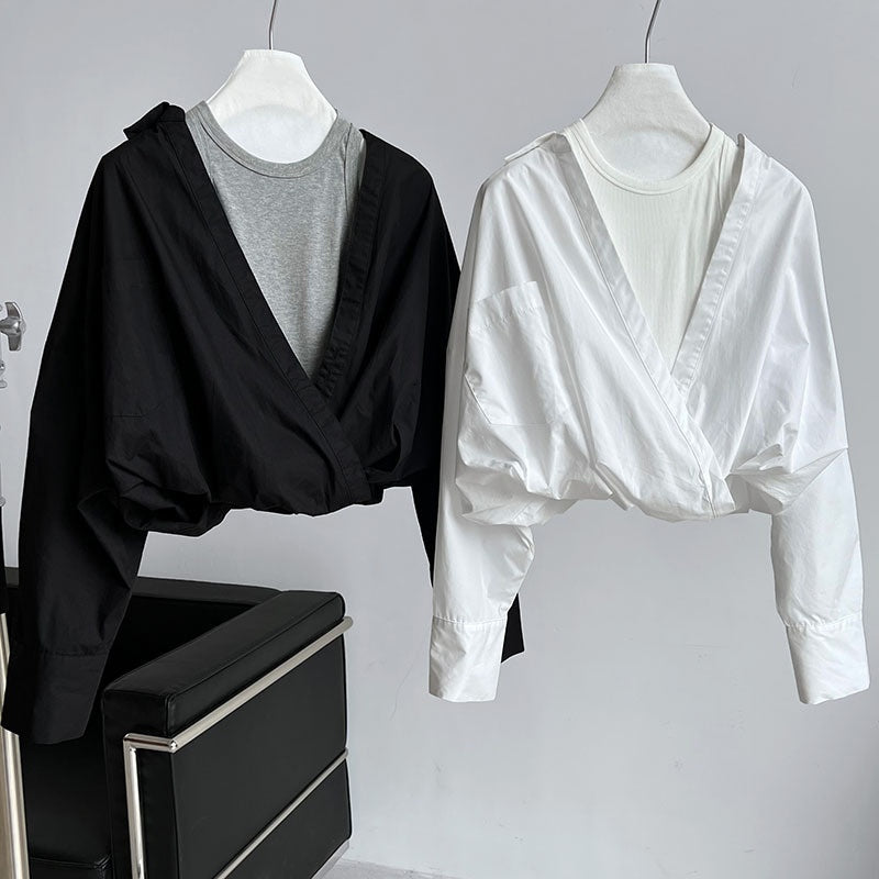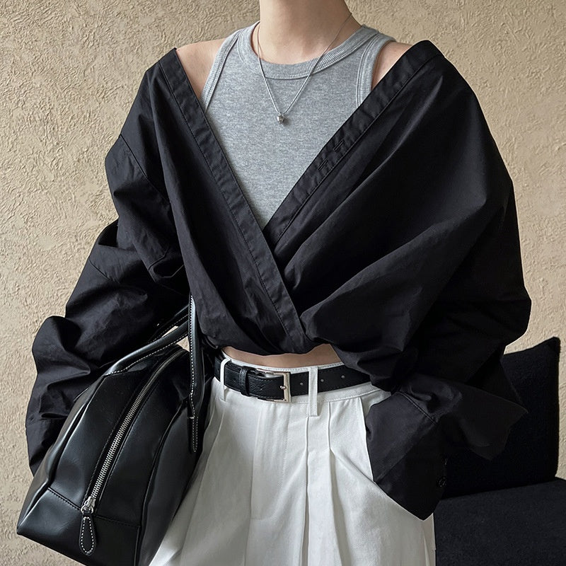 重ね着風シャツ オフショルダーシャツ シャツ ブラウス トップス レディース