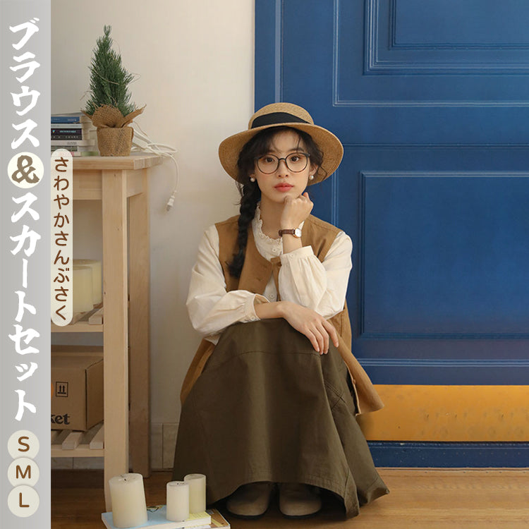 韓国風 セットアップ ベスト レディース トップス 3点セット 雑誌風