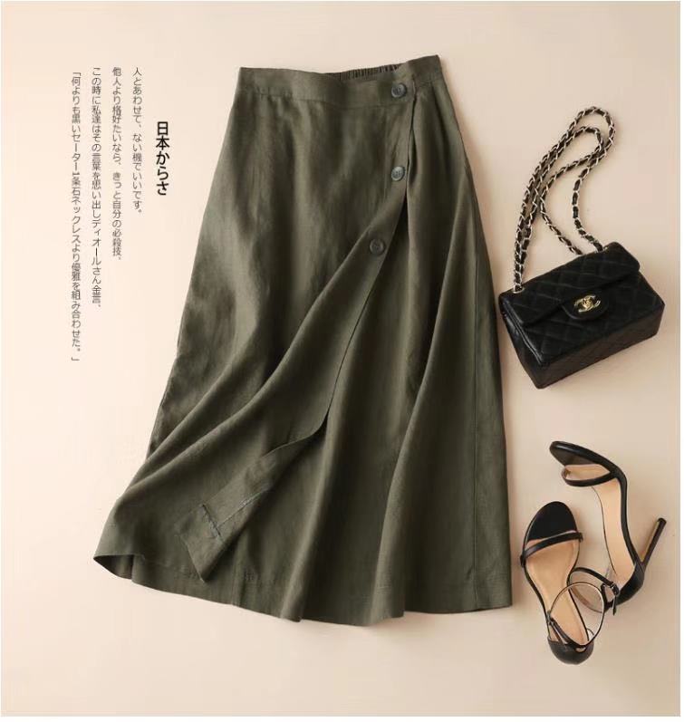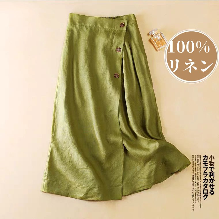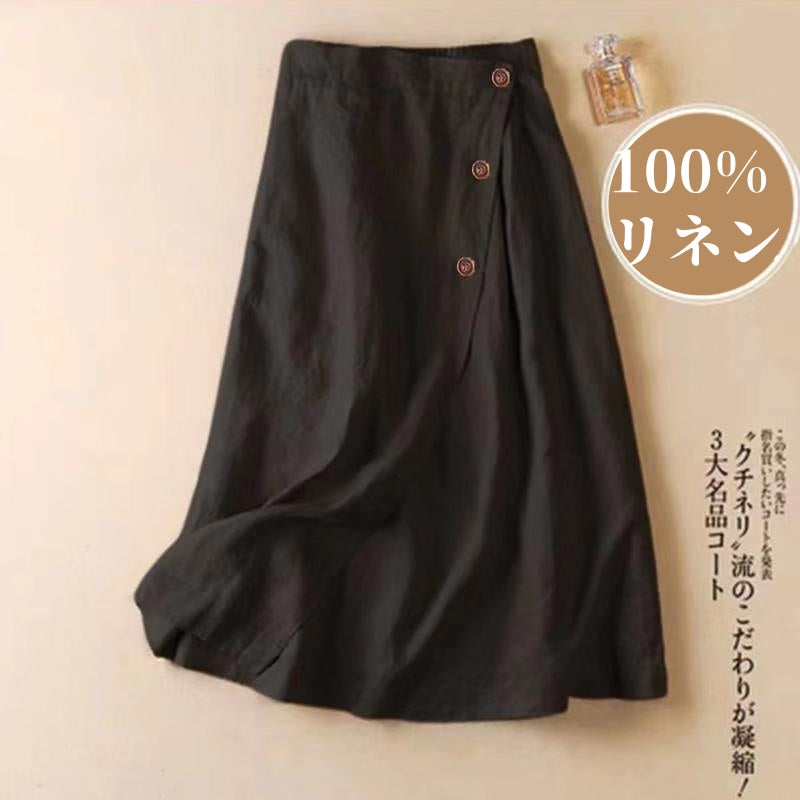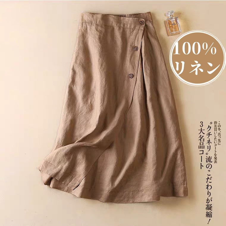 Aラインスカート フレアスカート ロングスカート ミモレ丈 レディース 綿麻スカート