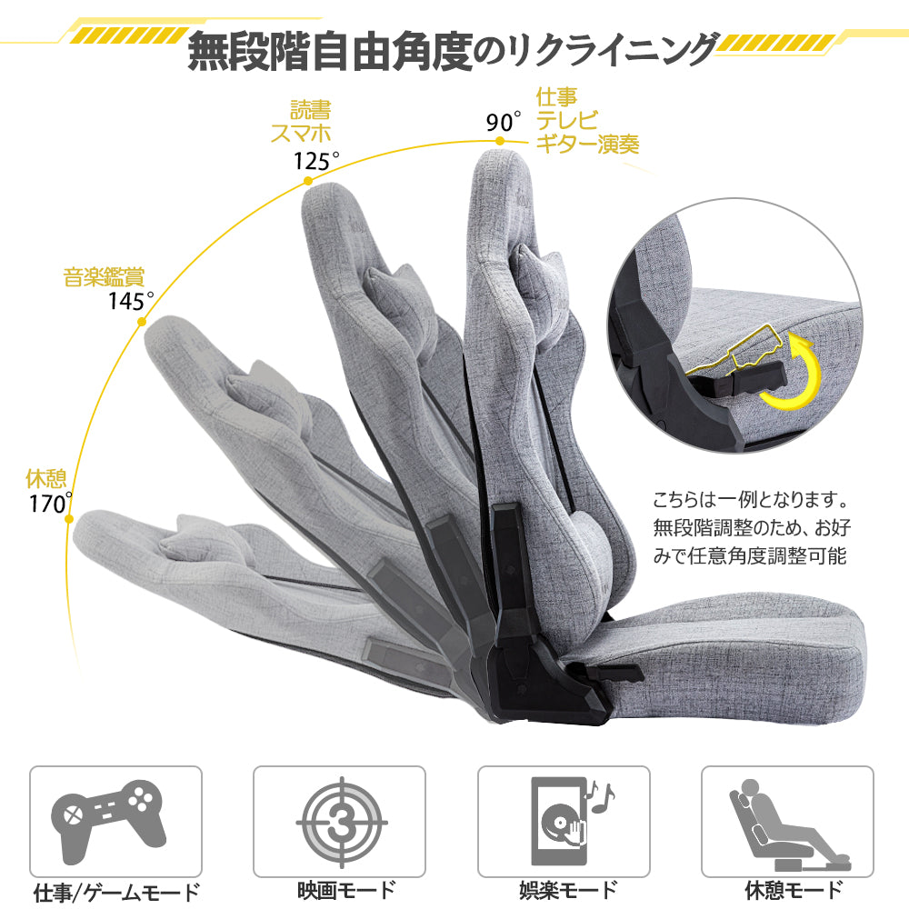- 自然風ゲーミング座椅子。ゲーミングチェアの風味をそのままで、日本住宅の内装を考慮し、日本家庭に合う色を使用、ファブリック生地とそよ風に合わせ、スタイリッシュ感満載。