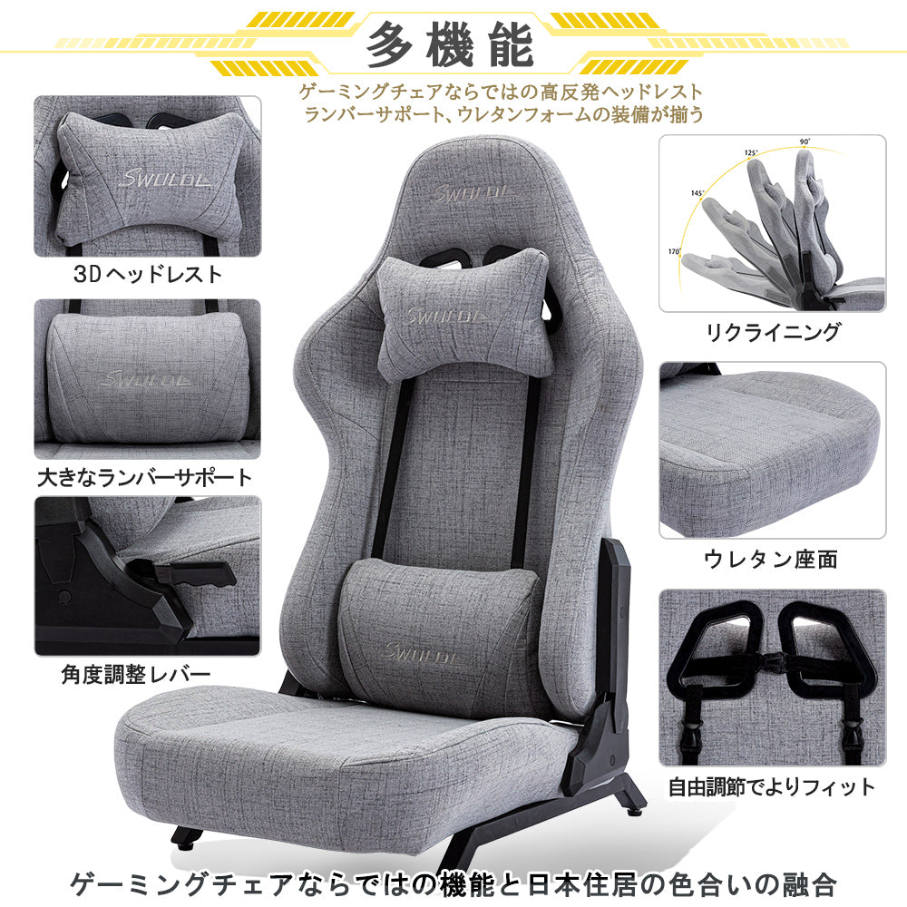 座椅子 ゲーミングチェア仕様 ファブリック素材 通気性 日本住宅向け色合い スタイリッシュ感 ウレタン座面 リクライニング ヘッドレスト ランバーサポート SWOLOL プレゼント sw06